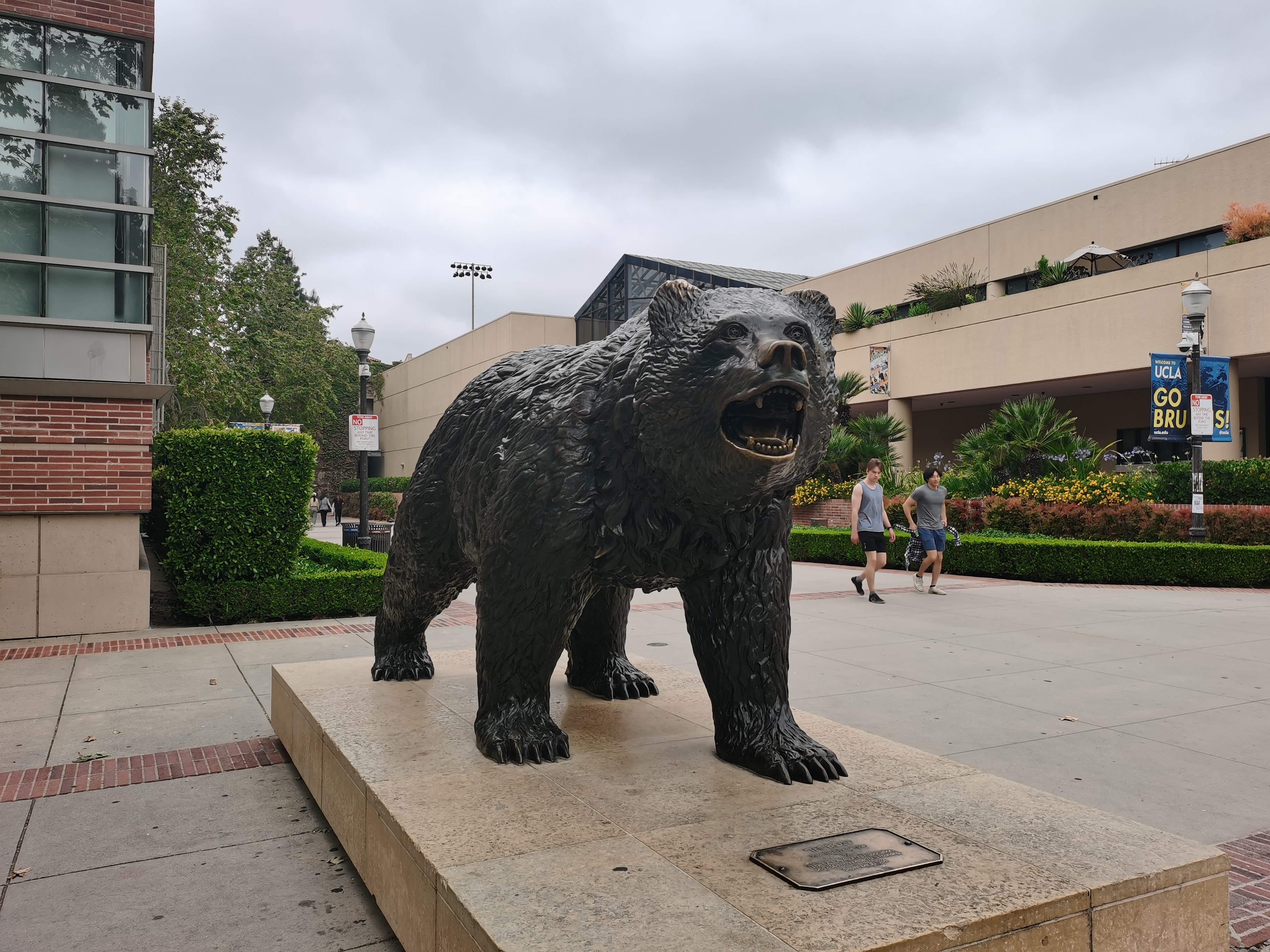 ucla校园很大,需要开车。里面都是老建筑,看到熊的吉祥物。学生们都很有朝气。我关注最多的还是体育场馆,足球训练场挺不错的,有很多女生踢球。
