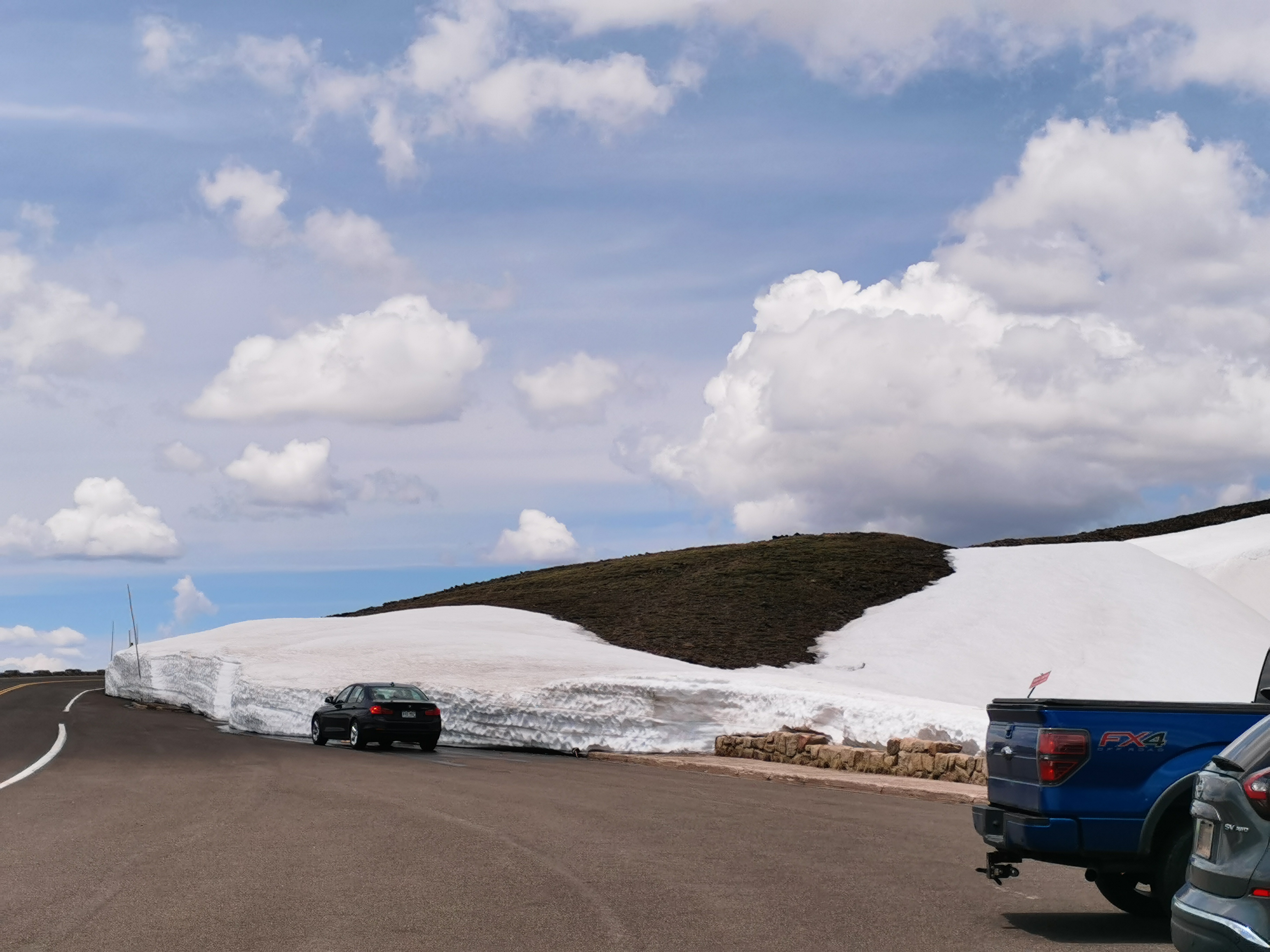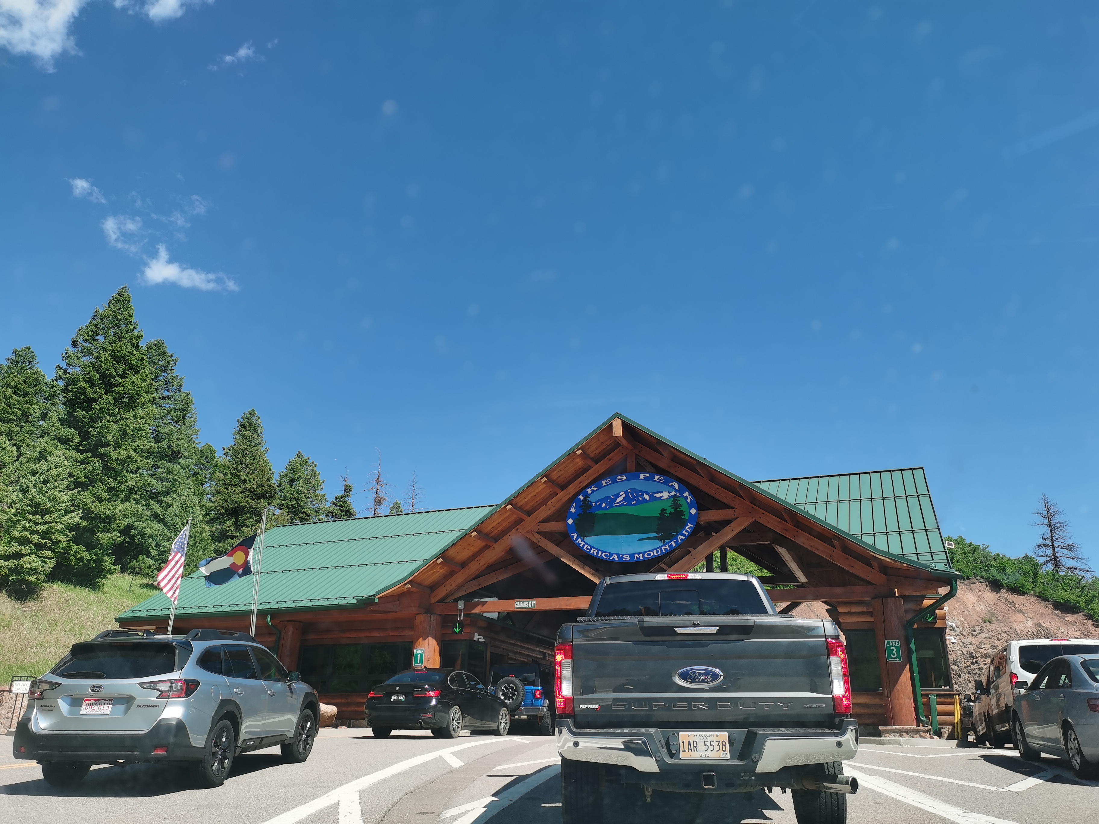 今天最大的惊喜是Pikes Peak。晚上12:30临时起意想去的,4300多米比昨天去的高。1点多睡的,7点多起的,直接开车杀过去了。在Colorado Spring隔壁城市,路上还是有点堵车,大概1小时45分,10点多一点到。直接开车到山顶。